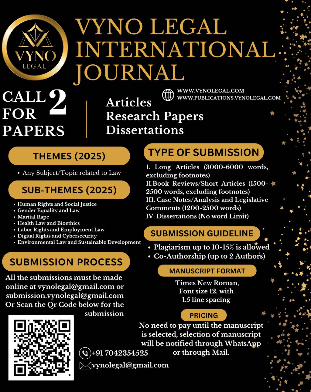 Call for Papers -2 : VYNO LEGAL INTERNATIONAL JOURNAL (2025)