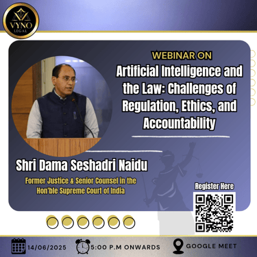 We are honoured to present a special live webinar session with Hon'ble Shri Dama Seshadri Naidu, a former eminent jurist of the High Courts of Andhra Pradesh, Kerala and Bombay and a Present Senior Counsel in Hon'ble Supreme Court. This enriching session is curated for law students, legal aspirants, academicians, and professionals eager to delve deeper into the nuances of the Artificial Intelligence and the Law.